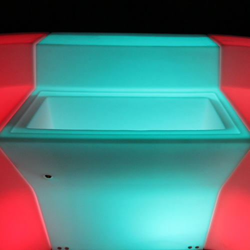 The bar illuminates at night using special LED technology hidden in the base of the bars. The LED lighting projects a colour wash through the bar pieces, allowing them to light up in bright colours. There are sixteen different colours to choose from which you can select via a remote. There is also an option to set the bars to flash fast or fade slowly between colours.
